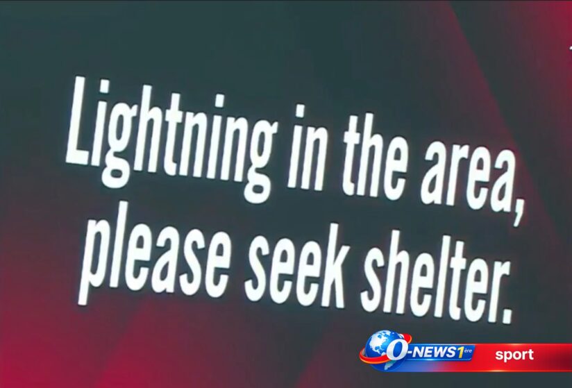 Alors que les joueurs étaient déjà sur la pelouse, prêts à en découdre, l’alerte tombe brutalement sur l’écran géant : « Lightning in the area, please seek shelter » (« Foudre dans la zone, veuillez vous mettre à l’abri »).